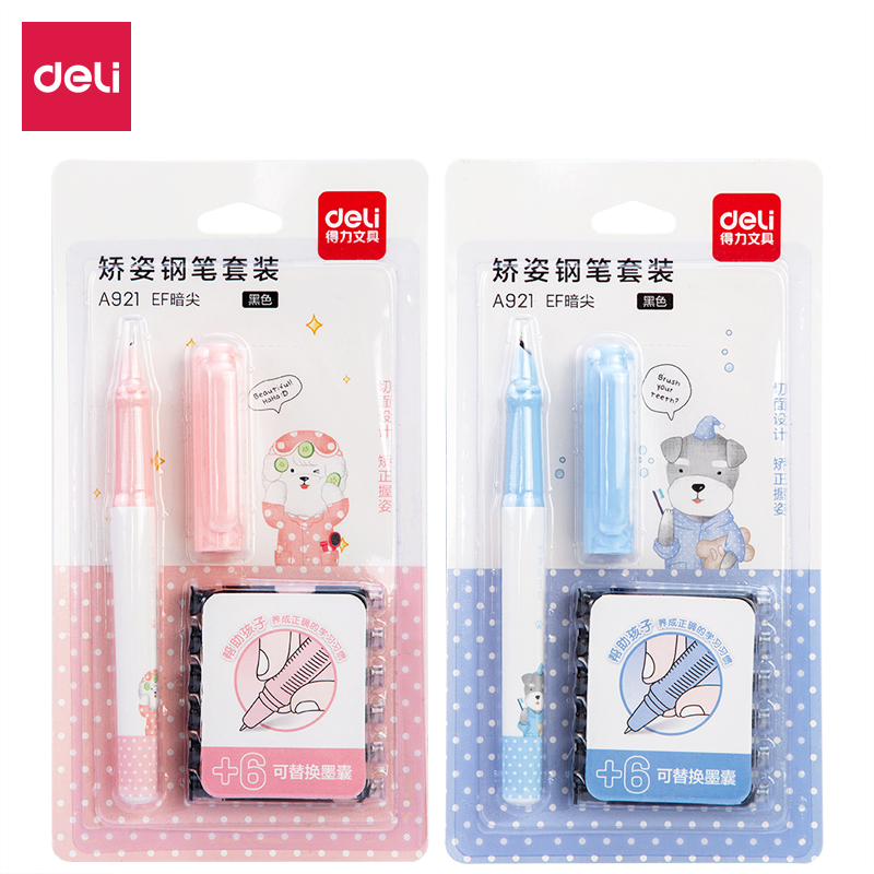 得力A921矫姿钢笔套装(黑)(6墨囊..