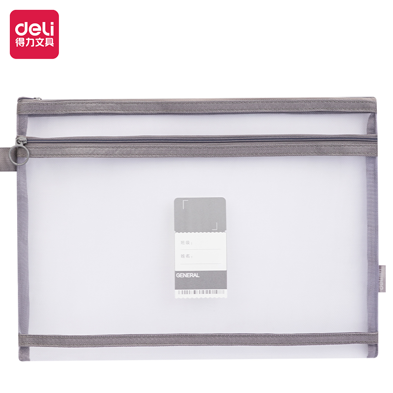 得力BA150学科双层网纱拉链袋(灰..